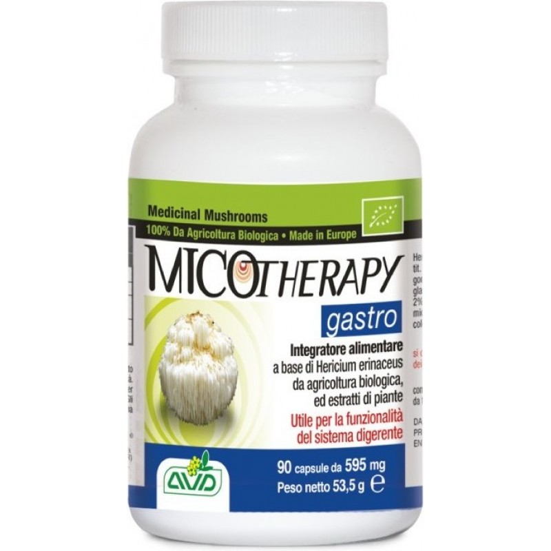 Con Hericium erinaceus da agricoltura biologica ed estratti di piante utile per la funzionalità del sistema digerente.