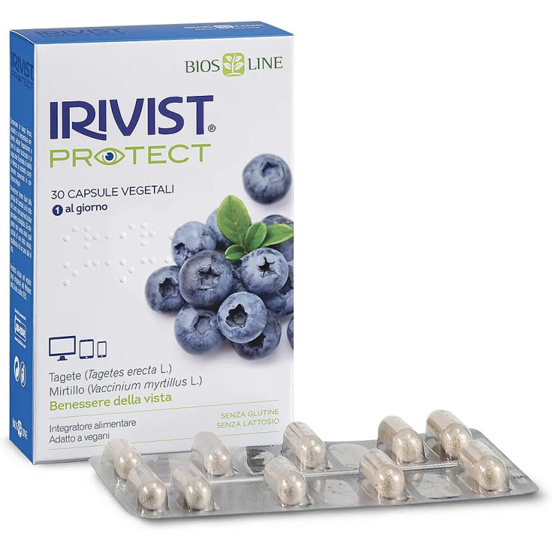 L’uso prolungato di device come computer, tablet e cellulari può affaticare la vista. Irivist® PROTECT favorisce il benessere della vista grazie alla sua formula a base di XanMax®, un particolare estratto brevettato di Tagetetitolato in Luteinae Zeaxantina, carotenoidi presenti nella macula dell’occhio, dotato di azione antiossidante. La formulazione è completata da estratto di Mirtillo nerotitolato in antociani, utile per la funzionalità del microcircolo e da Vitamina A, che contribuisce alla normale funzione visiva.