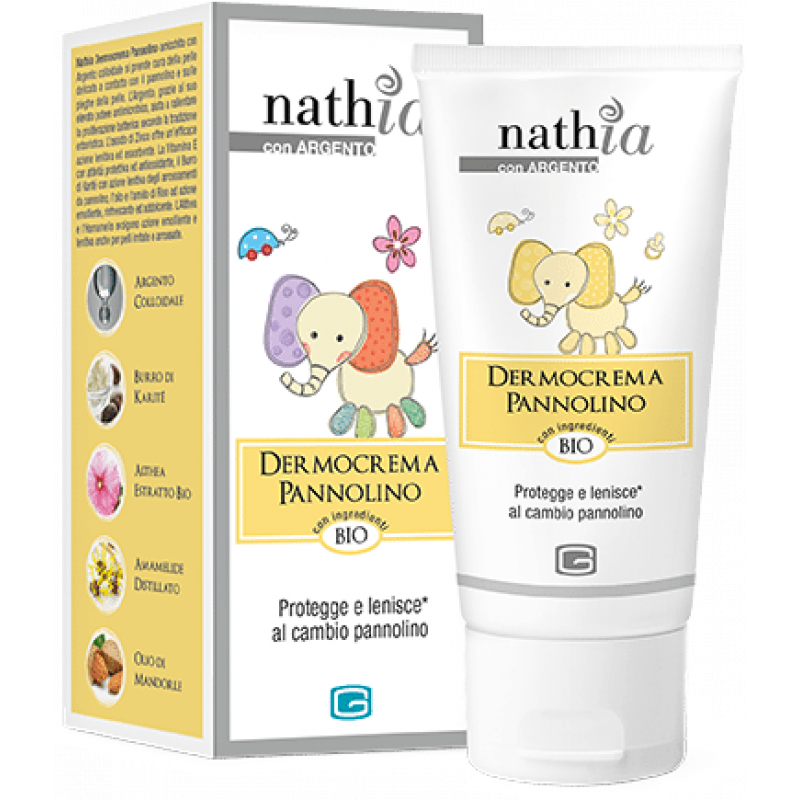 Protegge e lenisce la pelle al cambio pannolino. Nathia Dermocrema Pannolino arricchita con Argento colloidale si prende cura della pelle delicata a contatto con il pannolino e sulle pieghe della pelle. L’ossido di Zinco offre un’efficace azione lenitiva ed assorbente.
