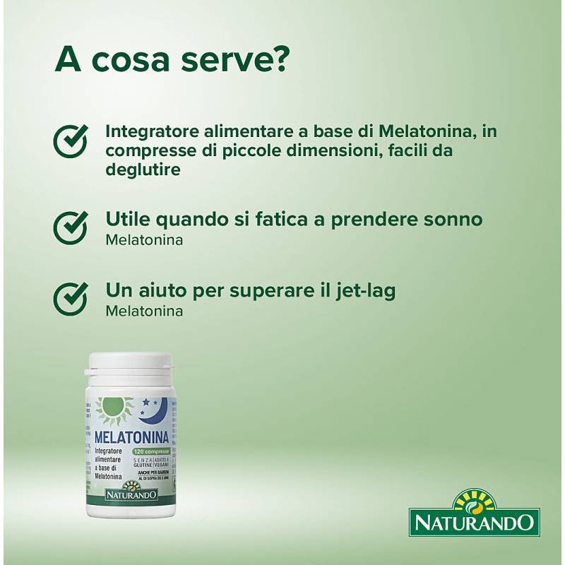 Dietary supplement based on Melatonin, in small size tablets that are easy to swallow.