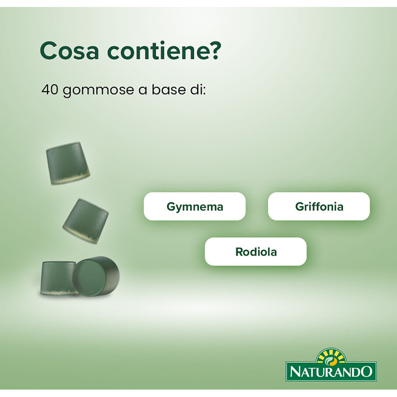 Integratore alimentare in gommose sugar free a base di *Gymnema, Rodiola e Griffonia.