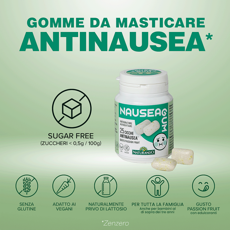 Integratore alimentare in gomme da masticare sugar free con Zenzero dall’azione antinausea*.