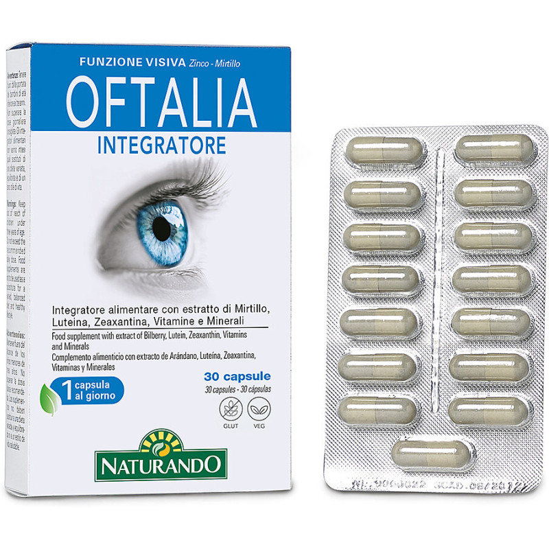 Integratore alimentare in capsule a base di Mirtillo nero, Luteina, Zeaxantina, Vitamine e Minerali.
